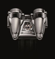 Auch wenn das Ganze wie ein Kunstwerk wirkt, ist es keine Kunst um der Kunst willen: Jede Komponente und jede Formgebung hat einen technischen Hintergrund. So garantiert die Bandbefestigung in Form eines Tragflächengerippes erstklassigen Tragekomfort beste Ablesbarkeit der Anzeigen gibt es quasi nebenbei.