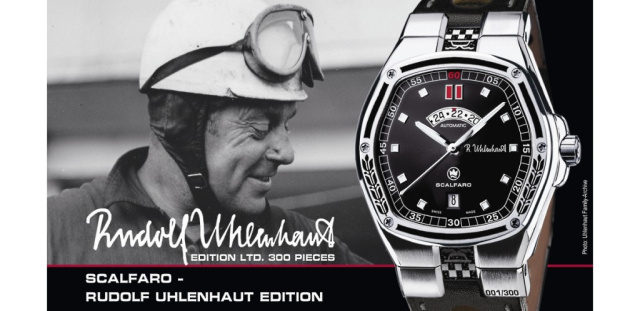 Aus der Zusammenarbeit der Uhrenmanufaktur SCALFARO und der Familie des legendären Mercedes-Ingenieurs Rudolf Uhlenhaut, dem Vater der Sportwagenikone Mercedes 300SL, entstand die SCALFARO Rudolf Uhlenhaut Uhren-Edition. Neben der Originalunterschrift auf der Gehäuseseite und zahlreicher Designelemente inspiriert vom Leben und Werk Rudolf Uhlenhauts, enthält jedes Exemplar der auf 300 Stück limitierten Sonderedition in Keramik eingebettetes Originalmaterial und somit die DNA eines der seltenen Mercedes-Benz 300SL Flügeltürer in Aluminium-Leichtbauweise, von denen lediglich 29 Exemplare gefertigt wurden.