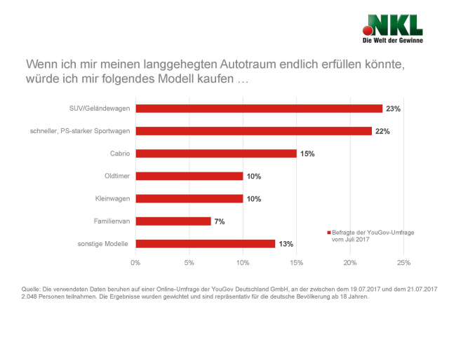 Das Automobil wird unter Umweltgesichtspunkten nicht erst seit heute von mancher Seite kritisch gesehen. Die Kritik überdeckt oftmals den Gewinn an individueller Mobilität und Freiheit, den das Auto besser als jedes andere Fortbewegungsmittel immer bot und immer bieten wird. Heuer sind die kritischen Stimmen lauter zu hören. Tricksereien bei den Abgaswerte, Stauchaos und hohe Spritpreise könnten dazu angetan sein, den Deutschen die Lust aufs Auto zu vermiesen oder gar komplett zu nehmen - so möchte man jedenfalls meinen. Doch dem ist nicht so, wie eine repräsentative Umfrage des Marktforschungsinstituts YouGov, die im Juli 2017 im Auftrag der NKL-Lotterie durchgeführt wurde, zeigt.