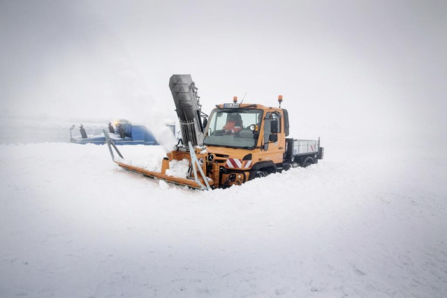 Kombiniert mit der Schneefräse SF 90-100 des schweizerischen Herstellers Zaugg ermöglichte der Unimog Geräteträger so die Bezeichnung der Baureihe für kommunale Einsätze den planmäßigen Durchstich auf der Passstraße am 29. April. Für die Schneeräumung mit einer Fräse notwendige, extrem niedrige Arbeitsgeschwindigkeit ist der Profi-Geräteträger mit hydrostatischem Antrieb ausgestattet. Er überträgt die Leistung mittels eines stufenlos regelbaren Hydrauliksystems. Außerdem hat der Unimog am Heck einen schwenkbaren Ballast, um das hohe Gewicht der Fräse von 1,8 t auszugleichen. So ausgerüstet arbeitete sich das kompakte Kraftpaket durch meterhohe Eis- und Schneeschichten nach oben. Am Hochtor, dem Punkt des Durchstichs, galt es, eine drei Meter hohe Schneeschicht zu beseitigen, und das bei wildem Schneegestöber. Die Schneewände entlang der knapp 48 km langen Strecke sind bis zu acht Meter hoch.