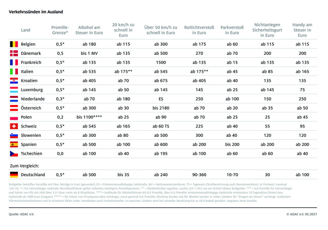 Die Osterferien 2024 sind da. Da werden die Deutschen zum fahrenden Volk und machen sich per Auto, Motorrad, Caravan und Wohnmobil in alle Himmelsrichtungen auf. Doch Achtsamkeit ist geboten, sollte es Euch in die europäischen Nachbarländer ziehen, denn hier wird man bei Verstößen gegen die Verkehrsregeln des Urlaubslandes oftmals kräftiger als hierzulande zur Kasse gebeten. Das reicht mitunter von hohen Geldbußen über Freiheitsentzug bis zur Beschlagnahmung des Fahrzeugs. Übrigens: Bußgeldverfahren werden europaweit verfolgt - und Unwissenheit in Bezug auf geltende Gebote und Verbote im Ausland schützen vor Strafe nicht.