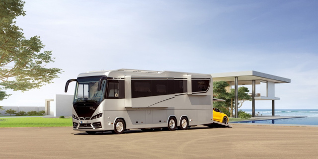 Der CARAVAN SALON 2022 in Düsseldorf (26.08. - 04.09.) wirft seine Schatten voraus und VARIOmobil Fahrzeugbau reist mit seinen Mercedes-Actros-Luxus-Reisemobilen an, um die Fahrzeuge der Mitbewerber in den Schatten zu stellen - zum Beispiel mit dem VARIO Perfect 1200 PLATINUM. 26-Tonnen-Gewicht hat der vollluftgefederten Drei-Achser Mercedes-Benz Actros 2553 LLL mit 12 m Aufbaulänge und perfekt darauf abgestimmter zwangsgelenkter Nachlaufachse zu bieten. Zum Luxus-Reisemobil der Superlative gehören drei pneumatisch dichtende Wohnraumerker wie eine XXL-PKW-Garage für einen Mercedes-Benz AMG GT mit automatischem Einzug auf frei tragender PKW-Plattform.
