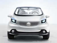 In Kontrast zum Aluminium der tridion Zelle steht der weiße Perleffekt-Lack von Stoßfängern, Fronthaube und Heckklappe. Wie bei der ersten Generation des smart fortwo sind die Rückleuchten in die tridion Zelle integriert. Turbinenartig wurden dort Cubes ins Plexiglas eingearbeitet. Die Frontscheinwerfer kommen ohne Deckglas aus, was den dreidimensionalen Eindruck des u-förmigen Tagfahrlichts verstärkt. Bei Front- wie Heckleuchten kommen ausschließlich LED zum Einsatz.