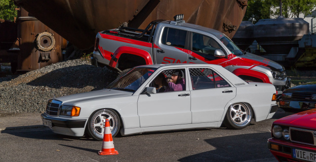 Lange Autoschlangen, die sich bereits vor Einlassbeginn auf den Zufahrtsstraßen bildeten, strömten kurz nach Öffnung der Tore aufs Gelände. Nach dem Einparken und „Ablegen“ packte so mancher erst einmal seinen Autopflegekoffer aus und kümmerte sich darum, dass der „Liebling“ auf vier Rädern in frischem Glanz erstrahlte. Andere wiederum enterten die Gastromeile und ließen sich Burger, Pizza & Co. schmecken. Mit einer Dosis VAU-MAX.de Super Plus Energy-Drink dazu war so die Grundlage für einen unterhaltsamen Treffentag perfekt.