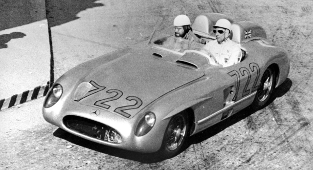 Der berühmte Mercedes-Benz 300 SLR '722' wurde 1955 von Stirling Moss mit Denis 'Jenks' Jenkinson als Beifahrer in Italien zum Sieg gefahren. Das Duo beendete das 1.000 Meilen-Rennen (1.600 Kilometer) mit einer Zeit von 10 Stunden, 7 Minuten und 48 Sekunden.