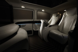 Mit den vier Metris-Projekt-Vans arbeitet Mercedes-Benz vier verschiedene Themen ab. In Kooperation mit Mercedes-Tuner RENNtech ist eine mobile Discothek entstanden. Dann gibt es noch einen heißen Feuerwehrwagen. Die dritet Variante legt vor allem Wert auf luxuriöse innere Werte. Projektauto Nummer 4 präsentiert den Mercedes-Benz Metria / Vito als mobilen Golf-Shop.