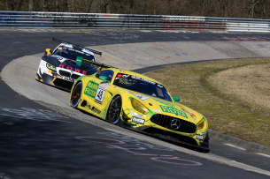 Bereits im Qualifying bei strahlendem Sonnenschein zeigten die AMGs, dass sie durchaus mit der Spitze mithalten können. Das Black-Falcon-Quartett mit der #14 konnte den 3. Startplatz erreichen, direkt gefolgt von der MANN-FILTER Mamba auf Rang vier. Beide haben sich damit auch "nebenbei" für das Top30-Einzelzeitfahren beim 24h-Rennen im Mai qualifiziert. Rang 13 ging an den AutoArenA-AMG, gesteuert von Patrick Assenheimer.