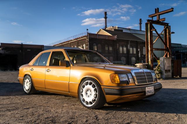 Auch unser Projektauto - der 400E aus Los Angeles - wird auf der Automechanika zu sehen sein. Als "Running Project", wie ihr das Fahrzeug von SCHÖNE STERNE vielleicht schon kennt, wird der W124, den wir mithilfe tatkräftiger Unterstützung von Partnern wieder aufbauen, auf der Messe ausgestellt. Die V8-Limousine in der seltenen Farbe "Californian Rockhard Gold" findet ihr in der Halle 12.1.