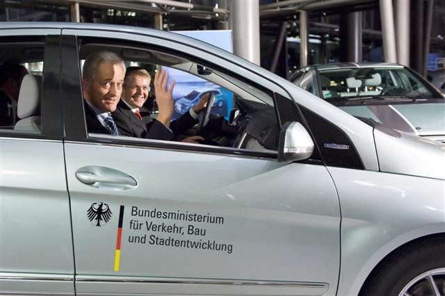 Mit der Mercedes B-Klasse F-CELL können die Mitarbeiter des Bundesverkehrsministeriums auf ihren Dienstfahrten künftig auch lokal emissionsfrei unterwegs sein. Denn Dr. Thomas Weber, Vorstandmitglied der Daimler AG und verantwortlich für Konzernforschung und Mercedes-Benz Cars Entwicklung, übergab heute in Berlin ein Brennstoffzellenfahrzeug an den Bundesverkehrsminister Peter Ramsauer. Ich möchte, dass diese Zukunftstechnologie im Alltag ankommt auch bei uns im Ministerium. Deshalb gehen wir mit gutem Beispiel voran: Ab heute setzen wir neben einem Batterieauto auch ein Brennstoffzellenfahrzeug im Fahrdienst des Ministeriums ein", erklärt der Bundesverkehrsminister.