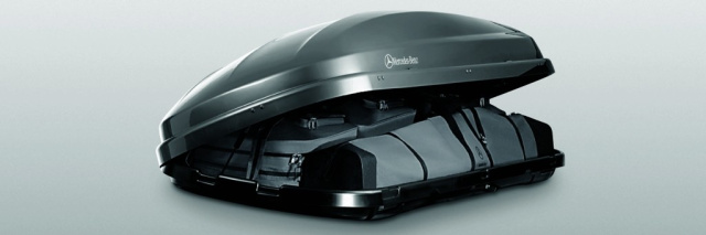 Beim Maßstab 220 x 80 x 40 cm bleiben keine Transportfragen offen. Die Mercedes-Benz Dachbox 450 ist das Raumwunder unter den portablen Dachkoffern aus dem Original-Zubehörprogramm. Ihr Zuladungsvolumen von 450 Litern gleicht dem Raumangebot eines C-Klasse Kofferraums. So bietet die Box beispielsweise ausreichend Platz für die Wintersportausrüstung einer vierköpfigen Familie. Dabei ist die Ausrüstung vor Schmutz und Spritzwasser bestens geschützt. Besonders komfortabel: Dank einer neuen Mechanik, kann die Dachbox rechts- wie linksseitig geöffnet oder geschlossen werden. Auch optisch fügt sich das im Windkanal optimierte Raumwunder harmonisch in die Designlinie der Mercedes-Benz Fahrzeuge ein. Neben der klassischen Farbe Silbermetallic, ist die Box nun auch in Schwarzmetallic erhältlich. Wer es noch außergewöhnlicher mag, kann sich den Dachkoffer über den Mercedes-Benz Partner auch in der persönlichen Wunschfarbe lackieren lassen. Die Dachbox 450 erlaubt eine Tragfähigkeit von 50 Kilogramm und bietet dem Nutzer jede Menge Freiraum für die individuelle Gestaltung von Urlaub und Freizeit.