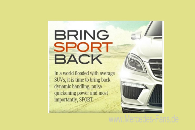 Auf der L.A. Auto Show, die am 18.November beginnt, wird der Mercedes ML63 AMg seine Weltpremiere feiern. Zum Anfüttern und um die Spannung auf das große Ereignis anzuheizen, veröffentlichte Mercedes AMG jetzt ein Teaser Bild auf seinem englischsprachigen Facebook-Account mit der Botschaft: "Bring den Sport zurück". Nun, mit dem 525 PS starken 5,5-Liter-Biturbo-Aggregat, das der ML63 unter der Haube haben wird, plus optionalem Performance-Package (dann 557 PS) sollte dies der M-Klasse aus Affalterbach gelingen. Der Bildausschnitt verrät nicht zu viel - aber man darf wohl, wie die aggressivere Frontgestaltung erkennen lässt, einen markanten Sportskerl im SUV-Format vom neuen Mercedes ML63 AMG erwarten.