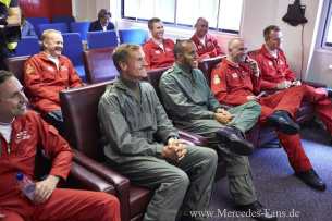 Nur Fliegen ist schöner, als einen Mercedes Silberpfeil zu pilotieren? Die Probe aufs Exempel konnte jetzt Mercedes-Formel1-Werksfahrer Lewis Hamilton machen, als er in Begleitung des Teams aus den Mercedes-F1-Boliden-Manufakturen in Brackley und Brixworth der Kunstflugstaffel der Royal Airforce "Red Arrows" neulich einen Besuch abstattete. Moderiert wurde der launige Ausflug, der von der BBC fürs britische Fernsehen dokumentiert worden ist, von Mercedes AMG Markenbotschafter David Coulthard. Und dann ging Lewis Hamilton für 30 Minuten in die Luft. Anschließend leistete er sich hinter dem Steuer seines Silberpfeils mit einem der Düsenjets noch eine Speed-Battle.