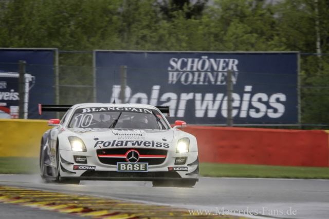 Eine Woche vor dem Start zum legendären 24-Stunden-Rennen am Nürburgring befinden sich die Rennflügeltürer der verschiedenen AMG Kundenteams weiter auf Erfolgskurs. Das zweite Rennwochenende des ADAC GT Masters fand im belgischen Spa-Francorchamps statt. Im ersten Lauf am Samstag, 11. Mai 2013 kamen Maximilian Götz und Maximilian Buhk (beide GER) von Polarweiss Racing auf den zweiten Platz. Ihre Teamkollegen Andreas Simonsen (SWE) und Sergey Afanasiev (RUS) beendeten das Rennen auf Position vier. Im zweiten Lauf am Sonntag, 12. Mai 2013 fuhren beide SLS AMG GT3 von Polarweiss Racing auf den gleichen Positionen ins Ziel wie am Samstag erneut ein erfreulicher zweiter Platz. Das Fahrerduo Götz/Buhk konnte von Startplatz zwei gleich in der ersten Kurve die Führung erobern und Position eins lange Zeit behaupten. Wenige Minuten vor Rennende wurde der SLS AMG GT3 auf abtrocknender Strecke auf Platz zwei verdrängt. In der Meisterschaft konnten sich Götz/Buhk auf Position sechs verbessern, ihre Teamkollegen Simonsen/Afanasiev liegen auf Position vier. In der Teamwertung belegt Polarweiss Racing Platz ei
