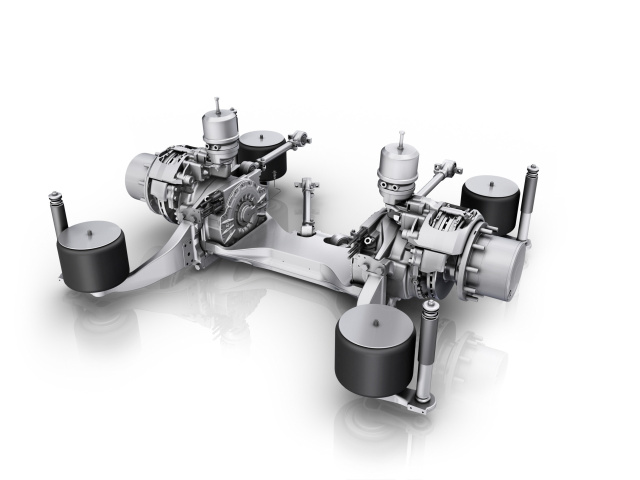 Sein Antrieb stützt sich auf eine elektrische Portalachse mit Elektromotoren an den Radnaben. Die Peakleistung der Motoren beläuft sich auf 2 x 125 kW, das Drehmoment auf 2 x 485 Nm. Es steht systembedingt vom Start weg voll zur Verfügung und sichert eine angemessene Dynamik selbst bei voller Besetzung.