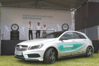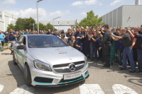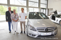 Während ihres Besuchs trugen sich Michael und Nico in Gegenwart von Oberbürgermeister Hans Jürgen Pütsch in das Goldene Buch der Stadt Rastatt ein und überreichten im Kundencenter des Werks die Schlüssel für zwei brandneue B-Klasse Modelle an zwei glückliche Kunden. Besonders wichtig war den Fahrern, einige Worte mit ihren Kollegen zu wechseln hierzu nahmen beide Piloten auf einer Bühne im Freien an einer ausgedehnten Frage- und Antwortrunde mit Mercedes-Benz Mitarbeitern teil. Einige glückliche Gewinner erhielten danach die Gelegenheit zu einer rasanten Mitfahrt mit Michael Schumacher und Nico Rosberg am Steuer zweier Mercedes-Benz SLS AMG Supersportwagen auf der Teststrecke in Rastatt. Zum Abschluss besichtigten die Fahrer die topmoderne Montage von A- und B-Klasse.
