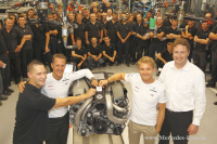 Nach ihrem Besuch im Herzen der Produktionsstätte für die Mercedes-Benz Kompaktwagen machten sich die Fahrer auf zu Mercedes-AMG in die Welt der Hochleistungsmotoren im Werk in Affalterbach. Dort stellten die Piloten ihre Fähigkeiten als Motoren-Monteure unter Beweis. Dabei wandelten sie die traditionelle AMG Philosophie one man, one engine leicht ab gemäß dem Motto one team, one engine halfen sie beim Zusammenbau des neuen hocheffizienten Achtzylindertriebwerks M 157. Der Motor mit einer Leistung von 410 kW (557 PS) kommt in zahlreichen AMG High-Performance-Automobilen zum Einsatz: Neben dem neuen GL 63 AMG, dem ML 63 AMG und dem E 63 AMG und weiteren AMG-Modellen wird er auch den neuen Mercedes-Benz CLS 63 AMG Shooting Brake antreiben.