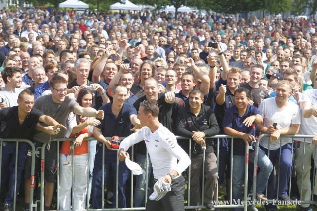 Nach ihrem Aufenthalt in der Mercedes-AMG Motorenmanufaktur reisen die Fahrer weiter zum ersten FOTA Fan Forum Deutschland in der Mercedes-Benz Niederlassung Stuttgart, wo sie gemeinsam mit ihren deutschen Formel 1-Kollegen Nico Hülkenberg und Timo Glock an einer Frage- und Antwortrunde mit 300 Fans und Daimler-Mitarbeitern teilnehmen. Die Veranstaltung findet zum ersten Mal in Deutschland statt und rundet das Programm der Fahrer zum Großen Preis von Deutschland in unmittelbarer Nähe zur Daimler-Konzernzentrale in Untertürkheim ab.