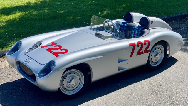 Der berühmte Mercedes-Benz 300 SLR '722' wurde 1955 von Stirling Moss mit Denis 'Jenks' Jenkinson als Beifahrer in Italien zum Sieg gefahren. Das Duo beendete das 1.000 Meilen-Rennen (1.600 Kilometer) mit einer Zeit von 10 Stunden, 7 Minuten und 48 Sekunden.