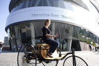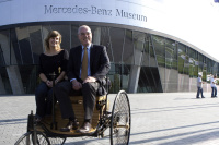 Fünf Jahre nach der Eröffnung konnte das Mercedes-Benz Museum in Stuttgart gestern einen ganz besonderen Gast begrüßen: Lilo Biersl aus München ist die viermillionste Besucherin. Die Überraschung war groß, als Michael Bock, Leiter von Mercedes-Benz Classic, der jungen Geschichtsstudentin gratulierte und sie zu einer Fahrt mit dem ersten Auto der Welt, einem Nachbau des Benz Patent-Motorwagens, einlud. Die 23-Jährige war für den Besuch des Museums eigens mit dem Zug aus München angereist.