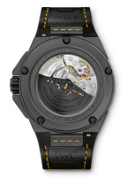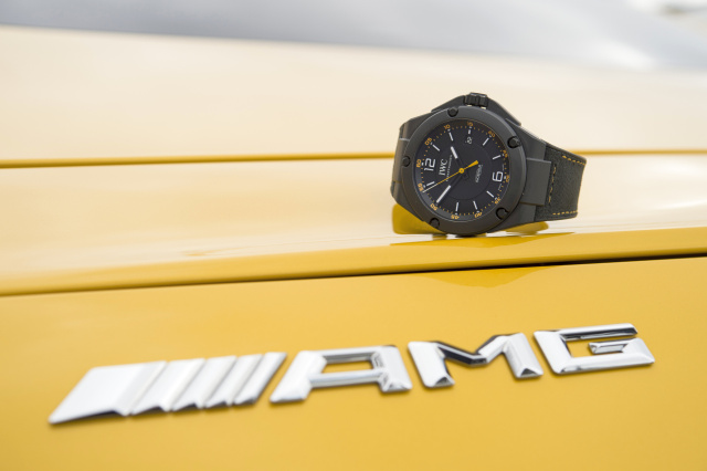 IWC Schaffhausen und Mercedes-AMG verbindet innovatives Engineering, hohe Handwerkskunst und Purismus. Diese Parallelen bringt die neue Ingenieur Automatic Edition „AMG GT” stilvoll zum Ausdruck. Das mehrteilige Gehäuse der Uhr besteht erstmals aus der Hochleistungskeramik Borcarbid, einem der härtesten und kratzfestesten Werkstoffe. Einen Tribut an den Namensgeber AMG GT zollt das Design. Die Farbe Schwarz ist elegant mit gelben Stilelementen kombiniert, die auf den exklusiven AMG Farbton „solarbeam“ Bezug nehmen. So verfügt das Kautschukarmband über gelbe Steppnähte und ein schwarzes Inlay aus der innovativen Mikrofaser DINAMICA, die auch an Lenkrad, Sitzpolstern und Innenhimmelverkleidung des neuen Mercedes-AMG GT eingesetzt werden.