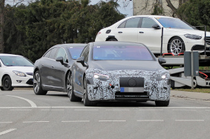 Der EQS soll das neue Flaggschiff bei Mercedes-Benz werden. In zwei Wochen - am 15. April - öffnet sich der Vorhang erstmals für die neue Elektro-Luxus-Limousine mit Stern. Kurz vor seiner bevorstehenden Premiere haben wir mehrere Prototypen des voll-elektrischen Mercedes EQS nochmal in einer geringen Tarnstufe erwischt. Auf den Bildern ist ein Großteil der Karosserie und die Linienführung ungetarnt zu sehen. Ein Rätsel bleibt weiterhin die schmale Klappe unterhalb der A-Säule auf der Fahrerseite.