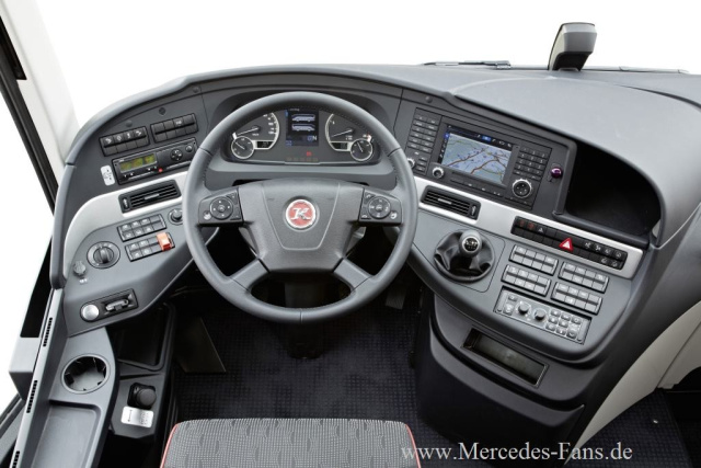 chnelle und bequeme Zugriffsmöglichkeiten auf die Bedieninstrumente, eine optimierte Sitzposition, eine ergonomisch verbesserte, hängende Pedalerie und ein verbesserter Überblick erleichtern dem Fahrer fortan die Arbeit. Auch die zahlreichen Utensilien des Fahrers haben die Entwickler in ihre funktionalen Überlegungen aufgenommen und Platz für weitere Ablagemöglichkeiten geschaffen. Auch das Ablagefach in der Mittelkonsole bietet ein zusätzliches Platzangebot. Herzstück des neugestalteten Cockpits ist das hochauflösende und wertig gestaltete Farbdisplay mit den vier runden Zeigerinstrumenten. Auch die Anordnung der Tasten und die Gruppierung der einzelnen Schalterelemente auf der Instrumententafel des Fahrerarbeitsplatzes wurden von den Entwicklern neu konzipiert. Hier sitzt jeder Griff.