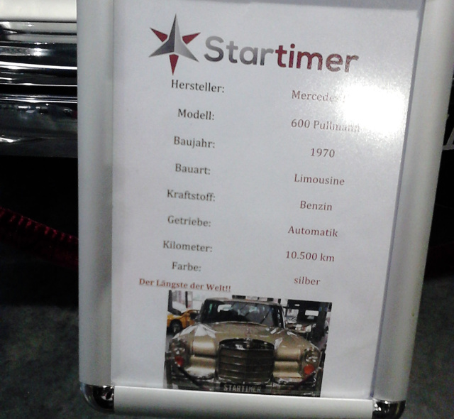 Das hier zu sehende Exemplar gilt wohl ganz offiziell als der längtes Pullman der Welt. Zu den "üblichen" 6,24 Metern kommen weitere 33 cm hinzu. Ausgeliefert wurde es 1970 in die Emirate, landete später in Kalifornien bevor es der jetzige Besitzer dort ersteigerte und es nach Deutschland brachte.