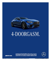 Und die machen mit einem Wortspiel auf ihren viertürigen AMG GT aufmerksam, an dem sich die Geister scheiden. „Witzig, spritzig!“ meinen die einen in der Redaktion, die andere Fraktion sieht die Plattitüden-Grenze nach unten deutlich unterschritten. Bei soviel zweideutiger Schlüpfrigkeit hilft auch keine 4MATIC mehr: 4-DOORGASM ist da zu lesen und auch wenn dieses Wortspiel im Deutschen keine echte Entsprechung hat, glauben wir doch, dass das jeder versteht. Im angepeilten US-Markt erst recht. Aber wie kommt es da an? Der "Rolling Stone" ist als altgedientes Livestyle-Magazin eher wenig prüde. Mal schauen, wo wir das Motiv noch entdecken. Ganz sicher nicht auf einer übergroßen Werbetafel im mittleren Westen...