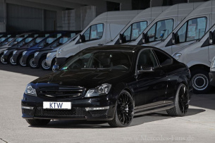 Der Mercedes C63 AMG kommt bei KTW mit schwarzen Leichtmetallrädern der Größe 8,5 x 20 Zoll mit 235/30ZR20er Bereifung VA und 10 x 20 Zoll mit 275/25ZR20 HA ins Rollen.