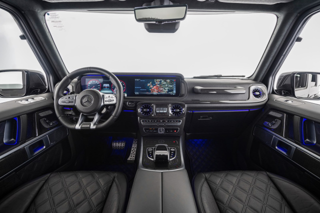 Das Besondere des Interieurs des hier gezeigten BRABUS 800 4x4² SUPERBLACK machen wieder Sicht-Carbon-Dekore und die schwarze BRABUS MASTERPIECE Ausstattung, für die feinstes Leder und die Hightech-Microfaser Dinamica verwendet wurde, aus.