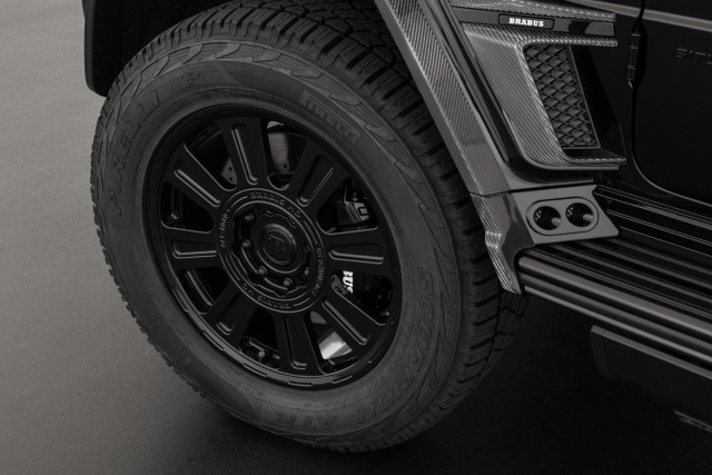 On- und Offroad wird der High-Perfomance-Geländewagen mit BRABUS Monoblock HD Leichtmetallfelgen im 8-Speichendesign im Format 9,5 x 22 und 325/55er All-Terrain-Pneus gefahren.
