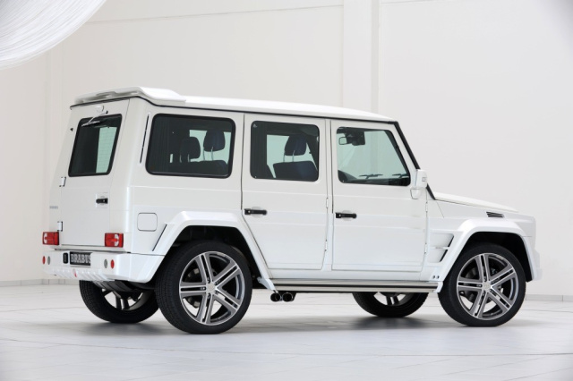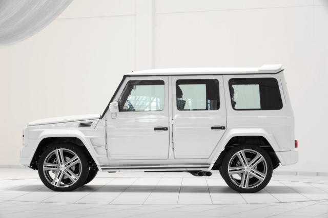 Mit der neuen BRABUS WIDESTAR Breitversion verleihen die Designer der klassischen Karosserie der G-Klasse ein noch markanteres, dynamischeres Profil. Die Kotflügelverbreiterungen machen die Karosserie zwölf Zentimeter breiter und optimieren mit ihren hinter den vorderen und hinteren Radläufen integrierten Luftauslässen die Entlüftung der Radhäuser. Die Türaufsätze verleihen dem Geländewagen auch in der Seitenansicht einen Auftritt mit großem Wiedererkennungswert. Solide Edelstahl-Trittbretter erleichtern den Ein- und Ausstieg. Durch die in die vorderen und hinteren Kotflügel integrierten LEDs werden die Trittflächen beim Ziehen eines Türgriffs oder Betätigen der Fernbedienung ausgeleuchtet.