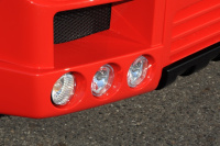 Die Frontschürze setzt an ihren beiden Seiten die Form der Verbreiterungen fort und versorgt das Triebwerk sowie die vorderen Bremsen über groß dimensionierte Einlässe mit Frischluft. Gleichzeitig reduziert die ausgefeilte Kontur auch den Auftrieb an der Vorderachse. Sechs Zusatzscheinwerfer optimieren die aktive Sicherheit bei Dunkelheit. Bei Tag machen die BRABUS LED-Tagfahrlichteinsätze unter den Hauptscheinwerfern auf den Power-G aufmerksam.