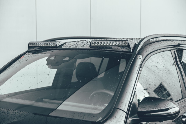 Der BRABUS Power Beams Dachaufsatz mit Zusatzscheinwerfern bietet ein Plus an Sicherheit bei nächtlichen Fahrten. Zwei leistungsstarke LED-Module verbessern bei Betätigung von Fernlicht oder Lichthupe die Ausleuchtung der Fahrbahn vor dem Fahrzeug. Die Rückansicht kann bei allen Varianten der neuen GLB-Klasse mit dem BRABUS Spoiler, der an der Heckklappe fixiert wird, noch aufregender gestaltet werden. Speziell für die Fahrzeuge mit AMG Line Paket gibt es außerdem als zusätzliches Designelement ein Set mit vier schwarz verchromten BRABUS Auspuffendrohren mit 90 Millimeter Durchmesser.
