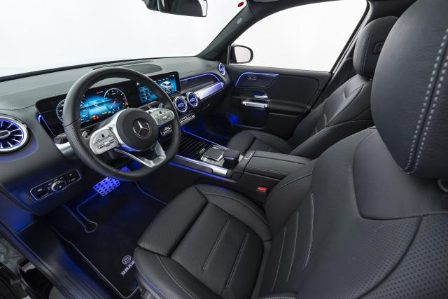 Ferner bietet BRABUS auch zahlreiche Veredelungsoptionen für die Innenausstattung der neuen GLB-Klasse an. Eloxierte Aluminium-Einstiegsleisten mit BRABUS Logo, das passend zur Ambiente-Beleuchtung des Autos in 64 Farbtönen illuminiert werden kann, gehören genauso zum Programm wie matt eloxierte BRABUS Aluminiumpedale. Der Fußraum kann in allen drei Sitzreihen mit hochwertigen Fußbodenschonern mit BRABUS Logo aufgewertet werden. Passend dazu gibt es auch eine BRABUS Kofferraummatte.