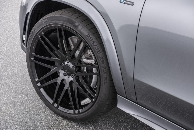 Zusätzlich wird die exklusive Optik durch die maßgeschneiderten BRABUS Monoblock Räder in verschiedenen Dimensionen bis 23 Zoll Durchmesser geprägt. Die größte Variante, die BRABUS Monoblock F „PLATINUM EDITION“ Hightech-Schmiederäder im 11Jx23 Kingsize Format, werden mit 295/35 ZR 23 Continental SportContact Hochleistungspneus gefahren. Speziell abgestimmt für die Verwendung mit sportlichen Straßenreifen ist das BRABUS Fahrwerksmodul für die AIRMATIC Luftfederung, das das SUV um ca. 25 Millimeter tieferlegt.