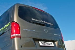 Der neue Mercedes-Benz Vito von HARTMANN TUNING, welcher seinen Dampf aus zwei 88 x 74-mm-Chrom-Endrohre entlässt, sieht aber nicht nur sportlicher aus, er kommt dank diverser Leistungssteigerungs-Kits, die der Van-Veredler auf Lager hat, auch agiler in Fahrt.