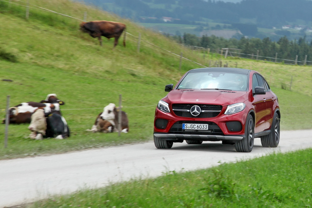 Die AMG-Versionen des neuen GLE-Coupés bieten genau die richtige Mischung aus SUV und Sportwagen, um bei der begeisterungsfähigen Klientel voll einzuschlagen. Speziell der 63 S bietet fahrdynamisches Sportwagen-Feeling, gepaart mit den räumlichen Vorzügen eines SUV. Nicht viel weniger dynamisch, aber deutlich günstiger kann das AMG GLE 450 Coupé zusätzlich potenzielle Kunden begeistern. Ein Hinkucker ohnegleichen - nur die Kühe sind unbeeindruckt!