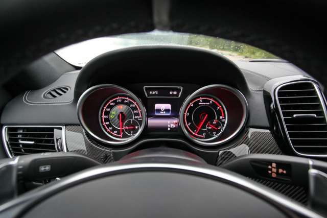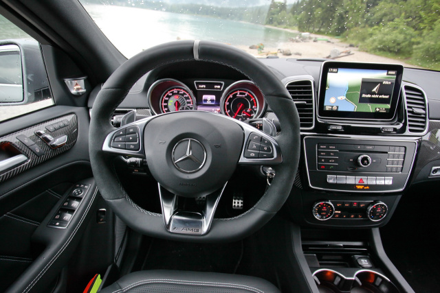 Der Kofferraum ist zwar sehr groß, lässt sich durch die extrem hohe Ladekante aber sehr schlecht be- und entladen. Hier musste die Funktion eindeutig der Form folgen, was bei diesem Konzept aber verschmerzbar ist. Schließlich gibt es ja noch den "normalen" GLE mit seiner vernunftbetonten Karosserie. Neues, dem normalen GLE entsprechendes Cockpit mit edlen Materialien.