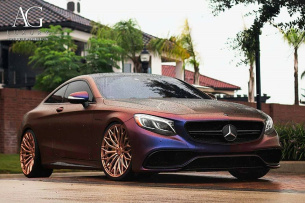 Mit dem reichhaltigen Farbenspiel der Karosserie des S63 harmoniert das goldene Finish der AGL30-Räder von AG Luxury Wheels vortrefflich. Die Felgen sind im Format 9 x 21 VA und 11,5 x 21 HA montiert. Dank Fahrwerksfeinjustierung stehen sie schön in den Radhäusern. Zusätzliche Anbauteile braucht es mit diesem setup nicht mehr, um alle Blicke auf den Benz zu ziehen. (Bilder: AG Luxury Wheels)