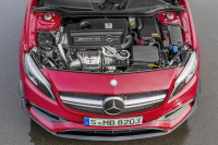 Dabei konnte das Verbrauchsniveau auf dem Niveau des bisherigen Modells gehalten werden: Den NEFZ-Wert ab 6,9 Liter je 100 Kilometer (entspricht 162 g/km CO2) erreicht kein anderes High-Performance-Fahrzeug in dieser Klasse. Der agile Vierzylinder-Turbomotor vereint seine Leistung und die Effizienz mit einem Bestwert: Die Literleistung von 141 kW (191 PS) markiert einen Rekord für ein Serientriebwerk mit vier Zylindern – es hebt den AMG Hochleistungsmotor auf das Niveau reinrassiger Supersportwagen. Den Leistungs- und Kraftzuwachs realisieren die AMG Motorexperten hauptsächlich durch einen neu abgestimmten Ventiltrieb. Hinzu kommen optimierte Verbrennungsprozesse durch die Neuabstimmung der Steuerzeiten und des Turboladers. Der maximale Ladedruck beträgt weiterhin unverändert 1,8 bar.