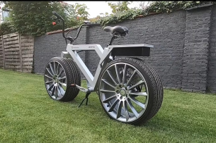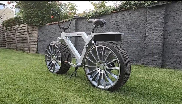 Sein aktuelles Projekt ist ein elektrisch angetriebenes DIY-Fatbike. Das Ungewöhnliche an dem Fahrrad sind die AMG-Räder in 8 x 20-Zoll, die mit 225/35-Autoreifen bepellt sind. Für ihn als bekennender AMG-Fan, war das eben die Herausforderung, AMG-Performance auch auf zwei Rädern erfahrbar zu machen. Das Resultat ist zwar fahrbar, aber mit dermaßen breiter Spur und 75-kg-Gewicht (ohne Fahrer) nicht unbedingt der reinste Genuss. HennyButabi sagt über seine DIY-AMG-Fatbike: „Es fährt ziemlich gut, ist aber sehr schwer, so dass man sich daran gewöhnen muss, um Kurven zu fahren.“