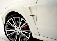 Die BRABUS WIDESTAR Kotflügelverbreiterungen an Vorder- und Hinterachse machen die M-Klasse insgesamt sechs Zentimeter breiter. Der GL wächst in der Breite sogar um acht Zentimeter an. Damit wird nicht nur eine bulligere Optik erreicht, die durch seitliche Ansatzteile für Front- und Heckschürze abgerundet wird. Die WIDESTAR Kotflügelaufsätze schaffen auch Platz für extrem breite BRABUS Kingsize Räder bis 23 Zoll Durchmesser.