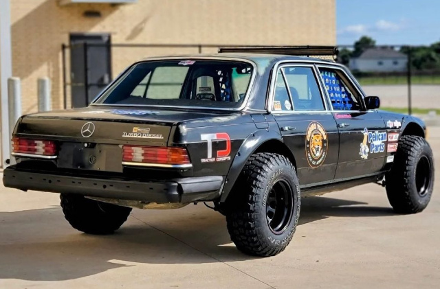 Die Studenten der Dekaney High School haben die Mercedes 300 TD auf den Einsatz im Off-Road-Gelände eigentlich ganz gut vorbereitet. Höherlegung, breite grobstollige Bereifung, Abgasführung durch die Motorhaube - so kann es über Stock und Stein und für den W123, den ein 3-Liter-Fünzylinder-Motor ins Rollen bringt, wohl auch zu Ende gehen.