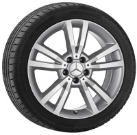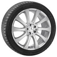 Die 20 Speichen der einteiligen Leichtmetallfelge sind paarweise angeordnet und zum Felgenstern hin ansatzweise überlagert.