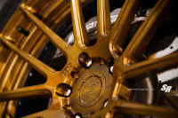Kontakt zur Fahrbahn hält der veredelete Mercedes G63 AMG mit 22zölligen ADV1 7.0 MV2-Rädern. Deren luftiges Doppelspeichendesign vergönnt dem Betrachter freie Sicht auf die mächtige AMG-Bremsanlage. Schön anzusehen sind die Räder aber auch wegen ihre Bronze-Finishes.