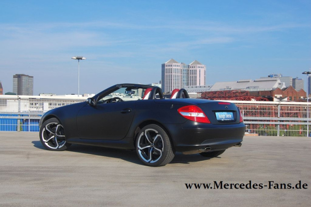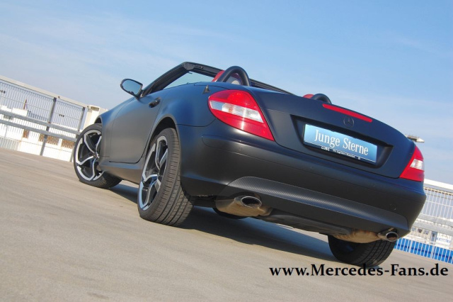 In solchen Fällen ist eine Folierung eine sinnvolle Alternative - es muss ja nicht in Schwarzmatt sein. Folien gibt es in reichhaltiger Auswahl. Für die Folierung des SLK in Mattschwarz inklusive Carbonfolie berechnet LUEG um die 2.000 .