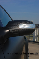 Der vormals obsidianschwarz-metallic-farbene SLK 200 ist für 2.000 in Mattschwarz foliert. Applikationen wie Spiegel und Heckdiffusor hat LUEG mit Carbonfolie elegant abgesetzt!