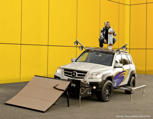 Highlight des Umbaus ist aber wohl die benzinbetriebene Winde, die wahlweise vorne oder hinten am GLK angebracht werden und Sportler auf ihren Boards bis zu 48 km/h schnell ziehen kann.