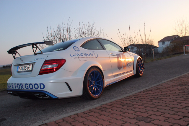 Kein Promo-Trick, sondern Tatsache: die beiden Formel 1 Stars David Coulthard und Jean Alesi starten beim Gumball 3000 in einem Mercedes AMG C63 Coupé Black Series in „Drive for Good“-Farben.